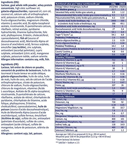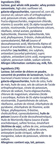 - GOS & FOS help digestion & prevent infections. Goat milk is less allergenic & more digestible creating softer curds in stomach with short & medium fatty acids helping easier digestion
